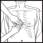 Coloque una mano del otro como visto en el cuadro para el paso de la intro. Ahora coloque el talón de la mano entre la línea del pezón de las víctimas. Presiona con suficiente fuerza a descender aproximadamente una y media a dos pulgadas. Hacer 30 compresiones a un ritmo de cerca de dos por segundo.