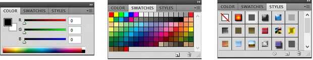 Panel muestras de Color del (Ventana > muestras de Color) es un buen lugar para almacenar los colores que utilizas a menudo en sus imágenes. Puede seleccionar un color frontal o de fondo haciendo clic en una muestra de color en el panel muestras de Color. Puede añadir o eliminar colores para crear una biblioteca de muestras personalizadas, guardar una biblioteca de muestras y cargarlos para su uso en otra imagen. Puede cambiar la manera de las miniaturas se muestran en el panel muestras de Color eligiendo una opción en el menú más
