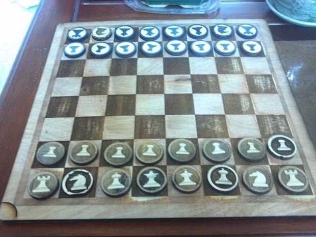 Nota especial: la madera para fabricar las piezas de ajedrez estaban hechas de maderas de desecho sobrante.