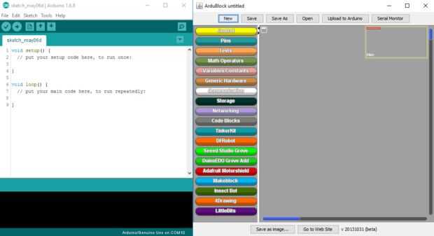 PRECAUCIÓN Ardublock depende del IDE de Arduino, no se cierran.
