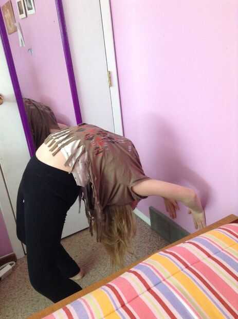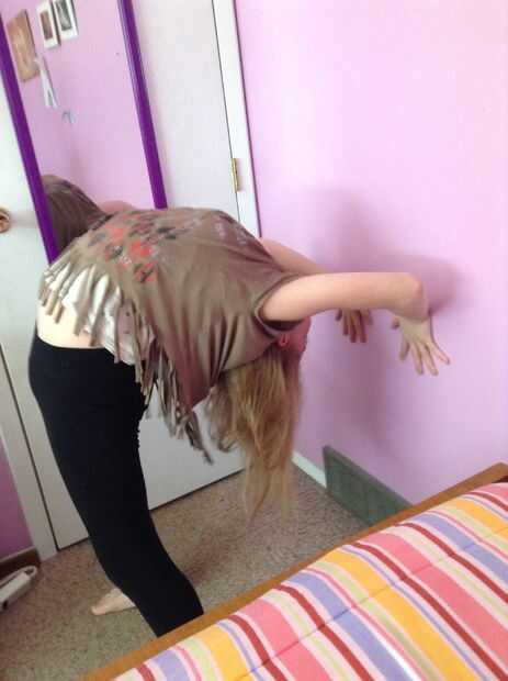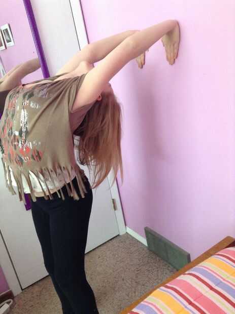Ir a una pared y pon las manos sobre ella con los dedos hacia abajo y bajar por la pared