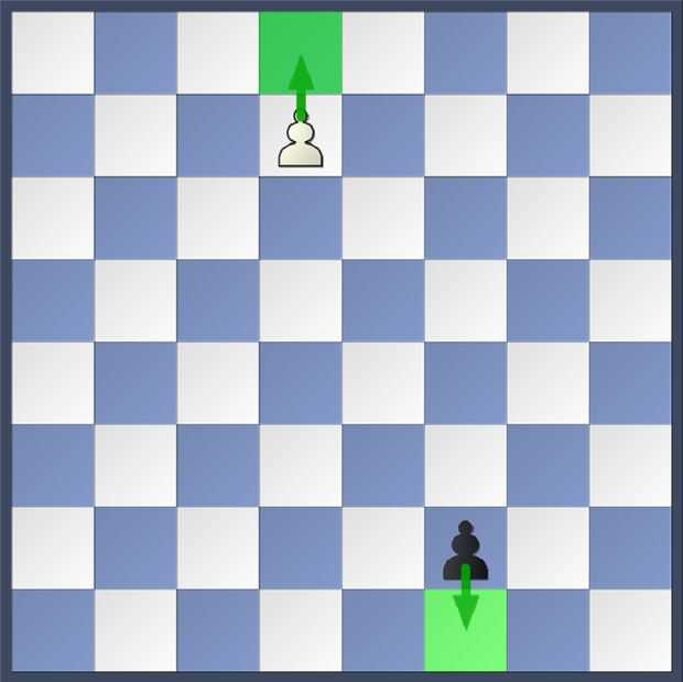 En el primer diagrama, podemos ver el Peón blanco y el Peón negro preparándose para avanzar hacia el borde del tablero. En el segundo diagrama, podemos ver que el Peón blanco ha promovido a una Reina blanca y que el Peón negro ha ascendido a una torre negra.