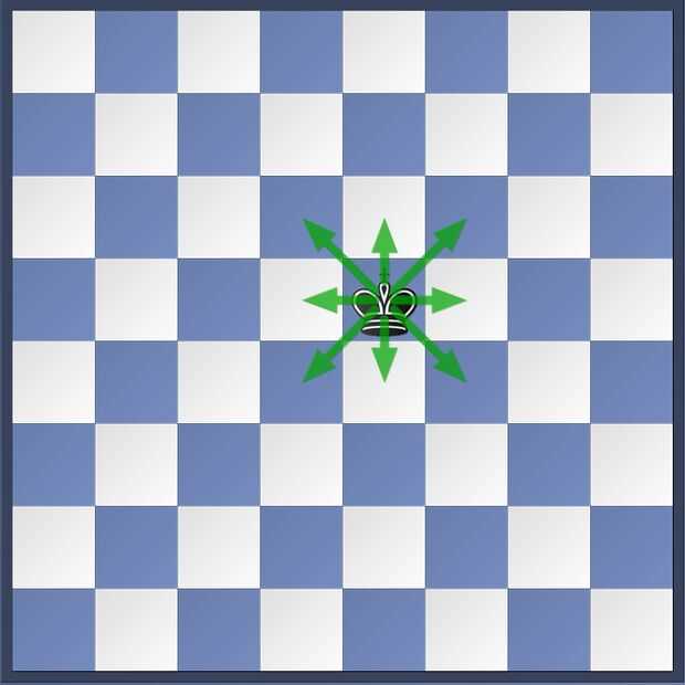 Fuera de los movimientos básicos para el rey y los peones, hay muchas reglas especiales que se aplican. Comenzando con el rey, el rey puede mover a cualquier casilla adyacente al que se encuentra desocupada y no atacada por una pieza enemiga.