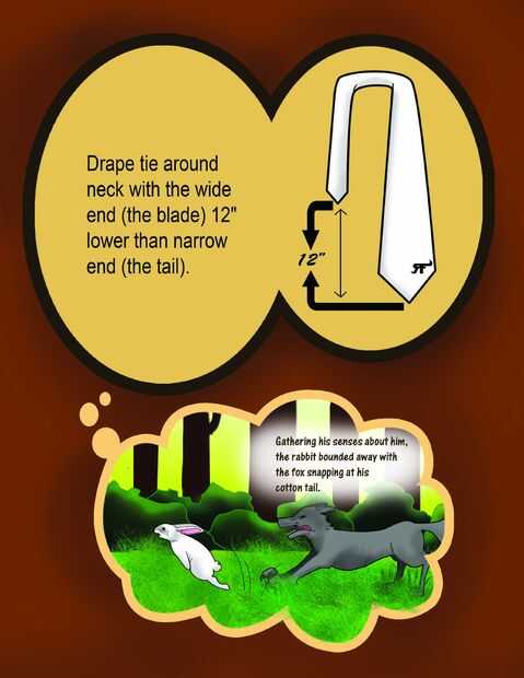 Cuelgue lazo al cuello con el extremo ancho (la cuchilla) 12" más bajo que el extremo estrecho (la cola).