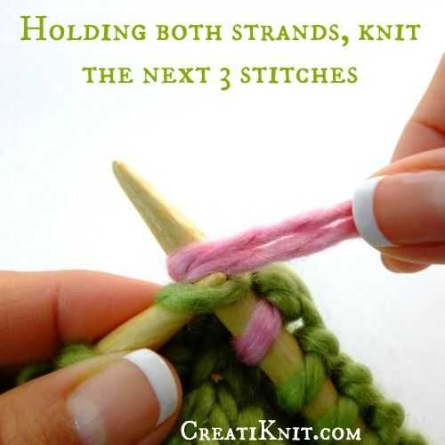Paso 9: Con dos de sus nuevos filamentos juntos como uno, tejer los siguientes 3 puntos