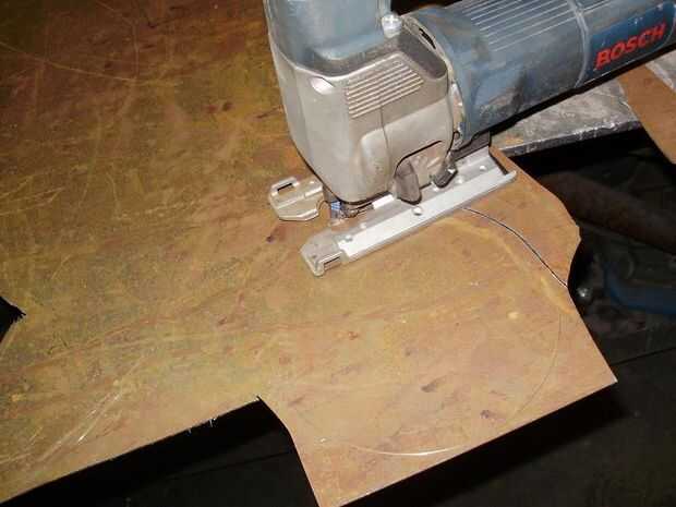de todos modos, una vez que marcó recortar con la sierra caladora y utilizar una amoladora o un archivo o lo que tienen que eliminar las rebabas de los bordes y poner un poco de un bisel en ellos. Si usted tiene uno, yo recomiendo una lijadora de banda con una correa floja. Funciona mejor para esto.
