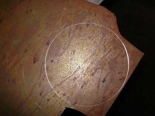 Para éste me imaginé una lata grande de café era más o menos bien, no pude encontrar un sharpy, por lo que trazado con un clavo. Esto era mucho más difícil de ver que se ve en la foto y no recomiendo hacerlo de esa manera.