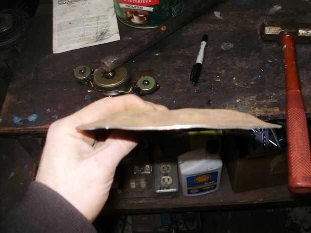 En este proyecto tuve un montón de problemas con la ondulación de pestaña. Cada vez que veas una ondulación a partir forma Asegúrese de martillo abajo plana otra vez. Este problema se puede aliviar mucho dejando 3/4 de pulgada a 1 pulgada del reborde en los bordes. Mi brida de media pulgada sólo no tenía suficiente carne para apoyarse y terminó que aplana hacia fuera cada 5 minutos.