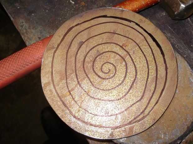 Para el segundo paso cambié el plato hondo y la cúpula profunda en mi martillo. Esto es también donde usted necesita para comenzar a prestar atención a dónde su martilleo. Siempre trabajar en espiral desde el exterior hacia el centro y se superponen cada golpe de martillo a la mitad.