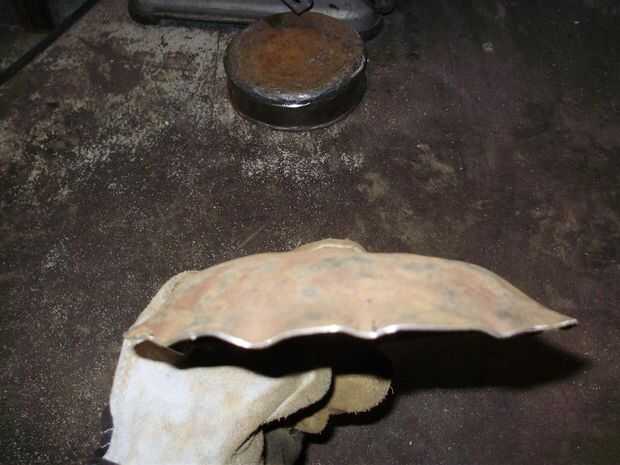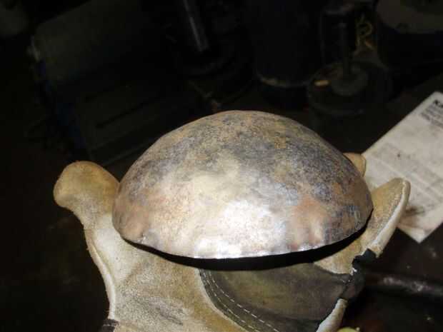 Para este paso necesitarás una forma dishing y un martillo dishing. Si no tienes tampoco entonces un martillo de bola grande y su patio trasero puede ser sustituida, pero usted tendrá que trabajar un poco más difícil y el resultado final tendrá una textura como un saco lleno de canicas.