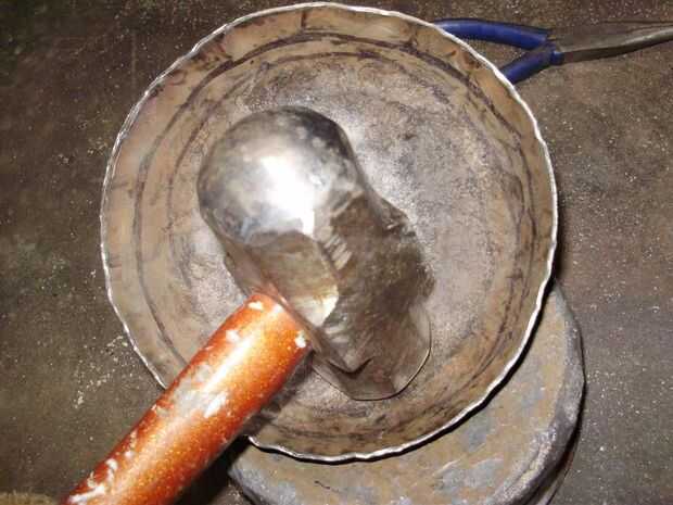 Si desea un acabado más liso aún usted puede aplane lo después de marcha, es una operación similar, pero hecho desde el exterior con una pulida, plana frente a martillo. En este caso, el jefe sería estar respaldado con un juego de pelota. personalmente, yo rara vez aplane nada porque me gusta el acabado martillado por bouging solos.