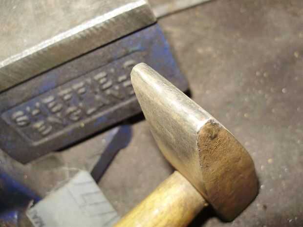 para comenzar con, recomiendo usar un maquinistas, o un martillo cruzado. la razón de esto es que la forma de la Peña hace que el metal se extienden sólo a los lados en lugar de empujar todo alrededor de la cara del martillo. Asegúrese de que la Peña del martillo tenga los bordes de tierra, dejando una agradable redondeada superficie, si no que te dejas gubias que fácilmente pueden convertirse en las fracturas por estrés estiramiento y trabajo endurece el acero.