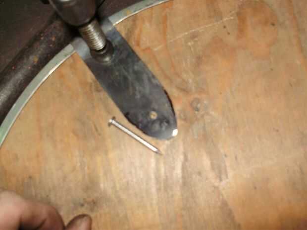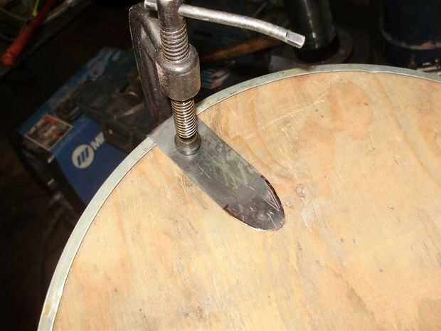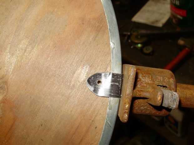 Por lo que entiendo, históricamente un borde de acero ser clavado al borde o celebrado con abrazaderas. No tengo suficiente superposición en este borde para remaches, abrazaderas así es.
