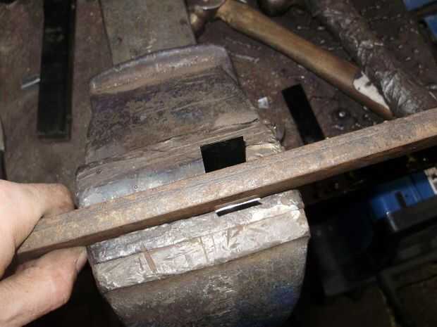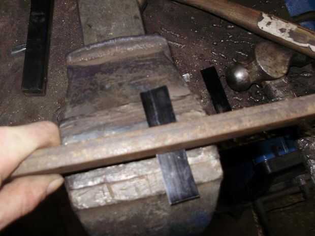 en pocas palabras, puse mis bandas a través de la prensa, con las mandíbulas sólo abrió un poco más de la anchura de la barra de acción, y luego puso el bar stock a través de las bandas y golpeado con un martillo grande.