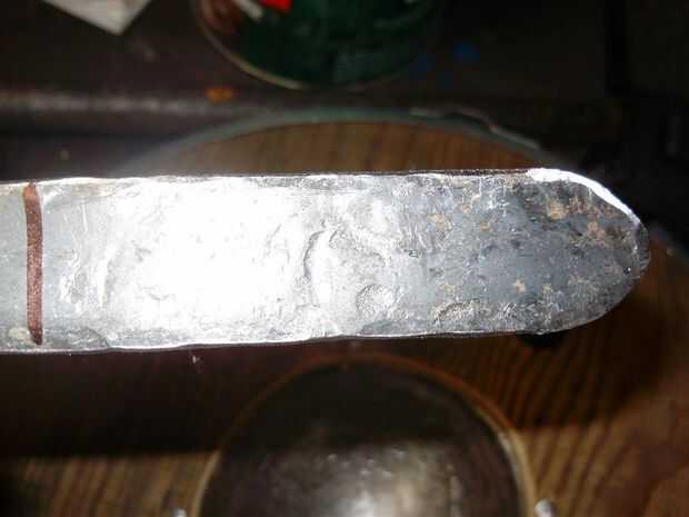 Lo primero que hice fue cortar alguna acción de barra de 1/8" hasta una longitud me gustaba y limpiar un poco los extremos. Luego marqué la zona que tendría las escalas en él y golpeado el resto con un martillo pesado para darle un carácter.