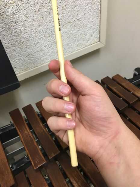 Cuando agarras un asimiento de su color, hay una técnica específica que debe utilizar para que cada nota es constante. Esto también asegura que su mano se ve estéticamente agradable y se siente natural al jugar. La parte primera y más importante de celebrar el mazo consiste en el fulcro. Como se ve en la figura 4, el fulcro consiste en "pellizcar" el dedo índice y el dedo pulgar sobre el martillo. Asegúrese de que no están exprimiendo el mazo manteniendo las manos y las muñecas relajadas. Una vez que han ello, envuelva los dedos alrededor de la maza, asegurándose de que usted no sujete el mazo de fuerza. Por último, voltee la mano, para que la parte superior de tu mano es paralela al techo.