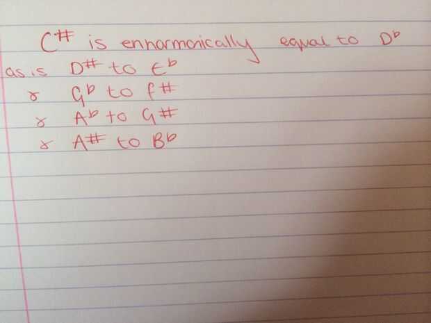 equivalencias enarmónicas son notas con la misma echada que se escriben diferentemente, matemáticamente son frecuencias ligeramente diferentes, pero en el piano que tienen la misma frecuencia.