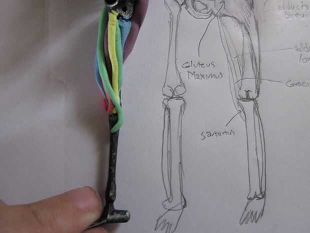 yo he estado enseñando yo Anatomía para conseguir una mejor comprensión de cómo dibujar la figura humana.Aquí es un ejercicio que puede hacer, utilizando un esqueleto de halloween barato de Dollar Tree y varios paquetes de sugru.Por cierto, parece qu