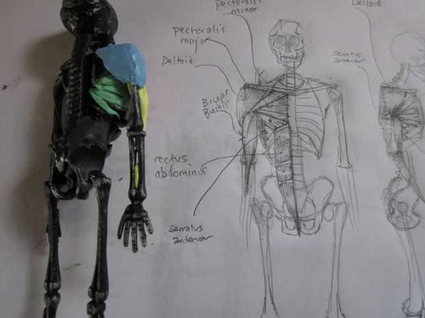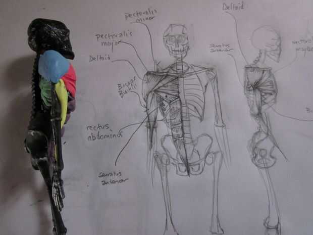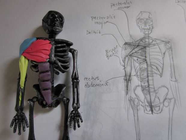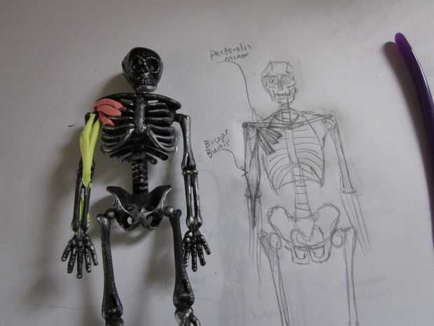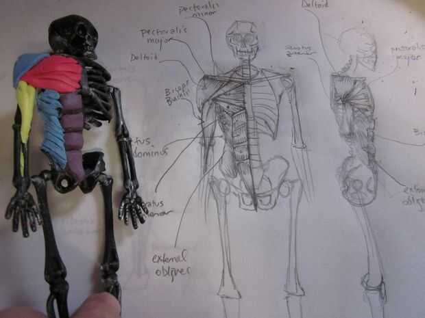 yo he estado enseñando yo Anatomía para conseguir una mejor comprensión de cómo dibujar la figura humana.Aquí es un ejercicio que puede hacer, utilizando un esqueleto de halloween barato de Dollar Tree y varios paquetes de sugru.Por cierto, parece qu