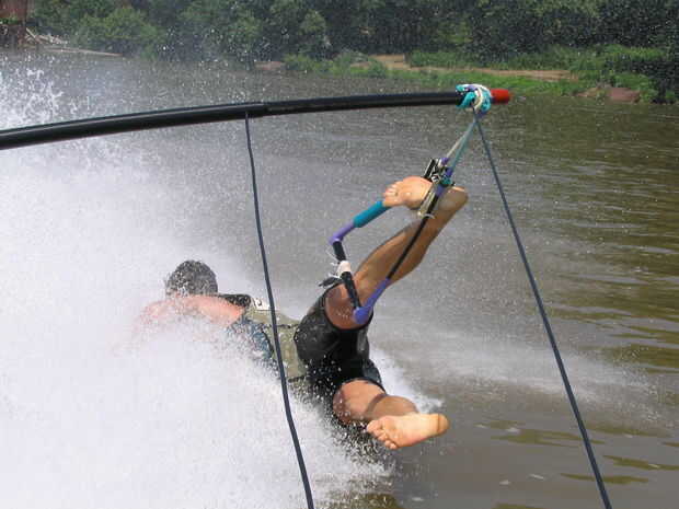 En primer lugar, usted va en el brazo, entonces transferir a la cuerda corta. Sentarse cómodamente en su extremo posterior, meter uno de sus pies en el hueco del mango, ajustar según sea necesario, luego tensar tus músculos abdominales y dejar ir con las manos. Lean está todo en el pie. Enrollamiento de los dedos un poco para evitar deslizamiento fuera del equilibrio.
