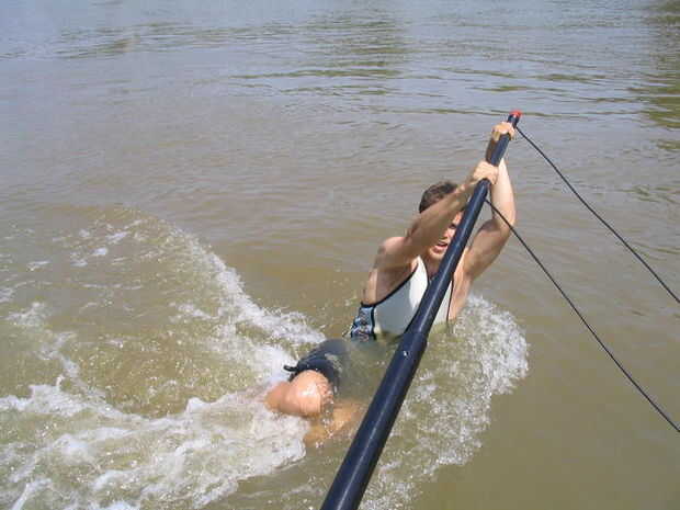 Si recoger el agua y tus pies arrojó detrás de usted sólo mantener presionado del auge de la, plano abajo otra vez y repita el proceso.