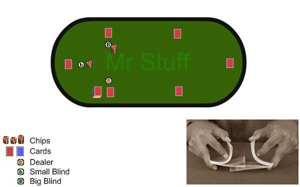 La cubierta se mezclan y el repartidor entrega dos cartas boca abajo a cada jugador, una tarjeta a la vez, comenzando por el jugador a la izquierda (posición de ciega pequeña, luego sigue de forma hacia la derecha). Estas tarjetas son sus cartas o Tarjetas de bolsillo.