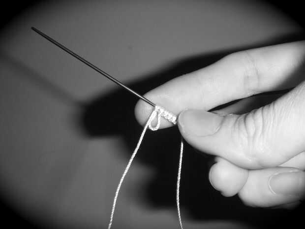 1. después de completar un ds, hacer la primera mitad del siguiente ds, pero en lugar de deslizar la puntada al lado de la primera ds, sostener el lazo alrededor de una pulgada 1/2 distancia mientras que la segunda mitad de las ds.