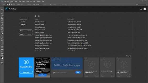 8. una vez que la aplicación ha terminado de descargar e instalar, Photoshop se pone en marcha.