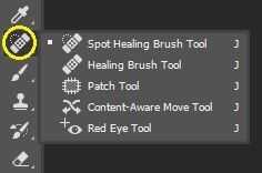 1. Seleccione la herramienta Pincel corrector en la barra de herramientas hacia la izquierda (es una herramienta oculta en la herramienta Pincel corrector puntual).