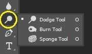 1. Seleccione la herramienta Dodge, Burn o una esponja en el menú a la izquierda.