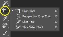 1. Seleccione la herramienta Recortar de la barra de herramientas hacia la izquierda.
