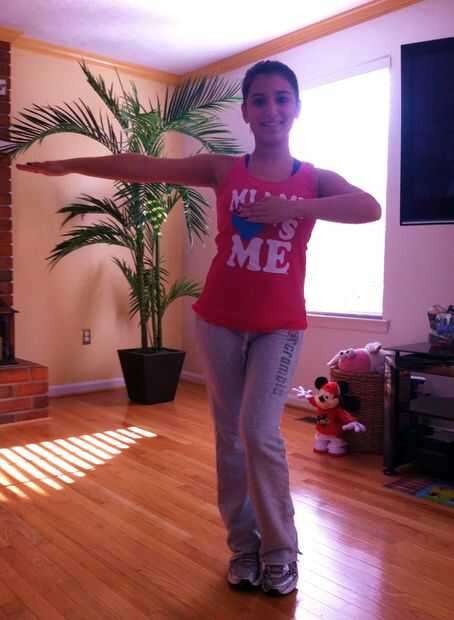 Ponga un brazo hacia fuera al lado: lado derecho si pie izquierdo está doblado. Lado izquierdo si se dobla el pie derecho. Frente brazo va directamente delante de su pecho.
