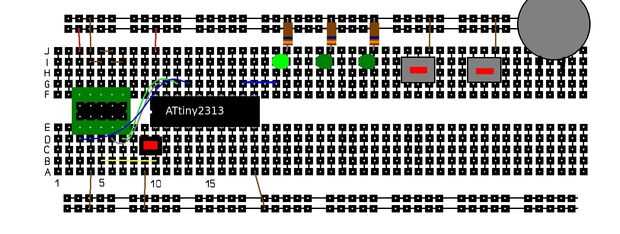Ahora que ya tenemos los componentes de cableado, vamos a trabajar en el programa. Asegúrese de que no tienes ninguna batería, u otra fuente de energía, conectado a la breadoard, esto hará que su sistema de experimentador obtener su energía del enchufe del ISP. Enchufe el programador USB al conector USB en su computadora y el extremo del cable en el cabezal macho 10 pines en tu protoboard Tiny2313.