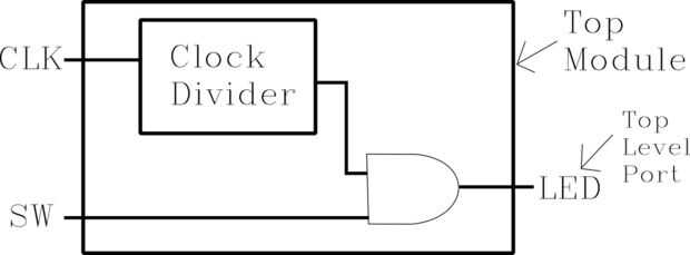 Pero en ese módulo superior, sin ser visto por el usuario, un número de otros módulos tales como contadores, comparadores, ojotas, etc. que son utilizados por el circuito, pero no necesariamente conectados a los puertos de nivel superior.