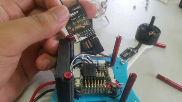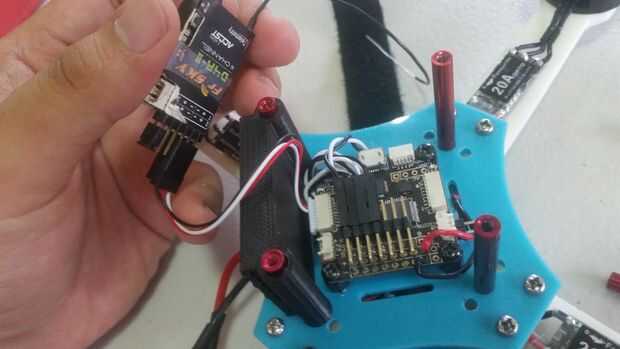 Cableado en esta parte es más fácil, todo lo que queda por hacer es simplemente conectar el receptor al controlador de vuelo.