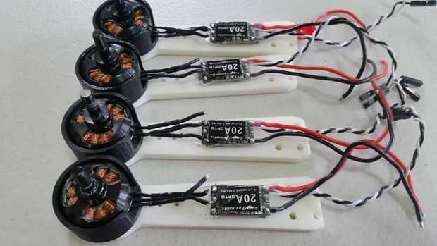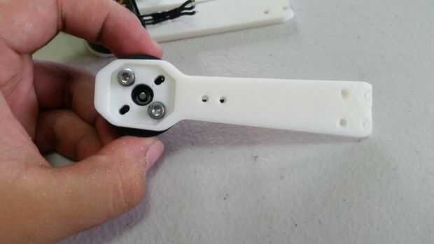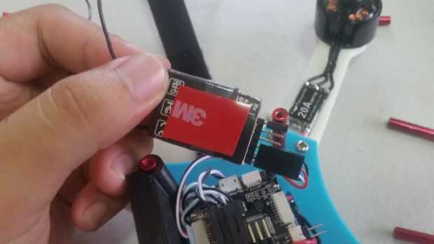 4. Aplique cinta adhesiva doble de 3 M por debajo de cada ESC y colóquelo con cuidado en la parte superior del brazo.