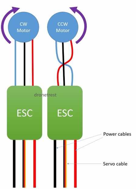Estos motores en realidad tienen un patrón, pero asegúrese siempre de que el alambre central del motor se conectará a la terminal del centro de la ESC. Entonces para el terminal izquierdo y derecho pueden intercambiarlos lo que significa que hay no es ninguna polaridad, aunque estos motores girarán en direcciones diferentes, podemos editar la dirección del motor ya que conseguimos a través de la configuración de controlador de vuelo.