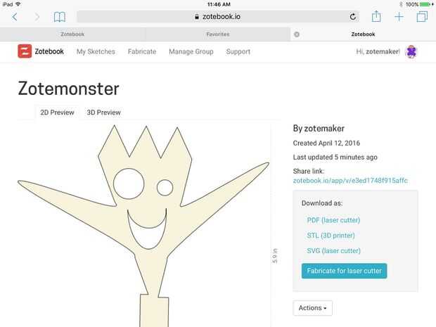 Paso 16: Ir a Zotebook.io para obtener un fichero pdf a láser cortar o imprimir.