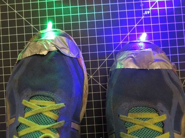 He grabado unos LEDs a mi dedos de los pies a mirar caminando, en el que me llamó la atención las rápida del dedo del pie-gotas al final de un paso. Moví los LEDs a mi dedos de los pies y los talones y estaba interesado en el rápido ascenso del talón así en un paseo lento. Prueba comparando este correr y correr para ver las diferencias.