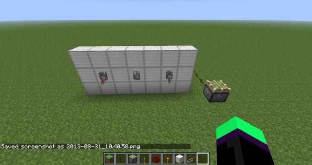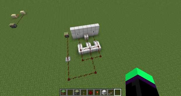 Cómo hacerlo: primero construir una pared alta a 3 cuadras y a 5 cuadras de ancho. Entonces se ponen tres palancas abajo una cuadra una de otra. Luego coloque algunos cables redstone detrás del bloque de la palanca del medio. Luego poner antorchas de redstone en los otros bloques detrás de las palancas. y cables redstone bajo las antorchas entonces poner un repetidor frente a una forma de la pared delante de todo el cableado. y un bloque infron de eso. Luego coloque otro bloque en frente de los que simplemente colocar y poner un pedazo de redstone en él. Después conectar los bloques con bloques más entre el final tres unos y conectar todas las piezas de redstone con más cables. Llevar el cableado de los bloques de dos extremos y el bloque de mediano hacia abajo y hacia fuera del remolque de la parte posterior y conectarlos a continuación el gancho hasta el puesto hacia fuera. Ver fotos de th