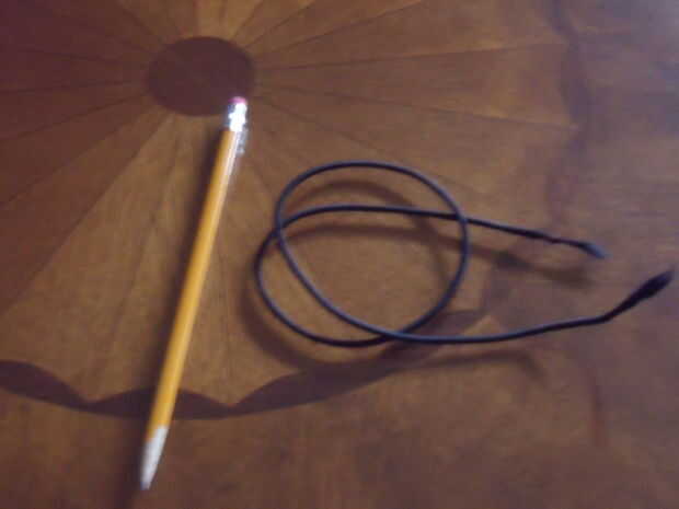 Todo lo que necesitas es un pencil(duh) y un pedazo de cable elasticy cosas (mina era cerca de dos pies de largo).