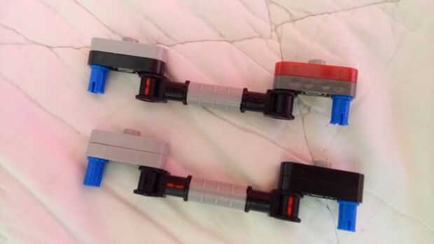 los conectores azules pueden girarse para alterar su posición dentro de la empuñadura.