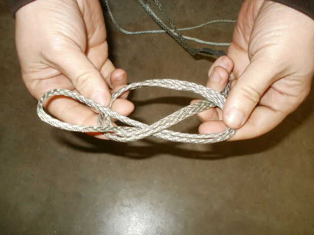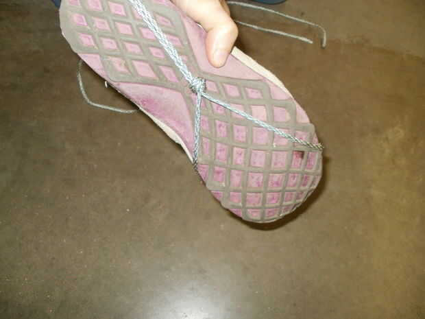 Como con la mayoría de las ideas esta es bastante simple, primero encontrar el punto medio de su cable.  Luego haces un bucle con lo que pienso como un nudo de ocho medio.  Puede usar un nudo ocho completo así.  Luego pones el lazo sobre el dedo del pie con el nudo hacia abajo.