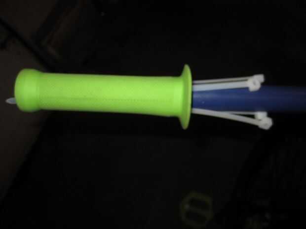 Poner el mango en las barras y asegúrese de que los lazos del cierre relámpago son espaciados dentro de la empuñadura. (Esto puede ser difícil!)