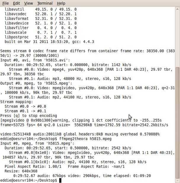 $ ffmpeg2theora h5815.mpeg