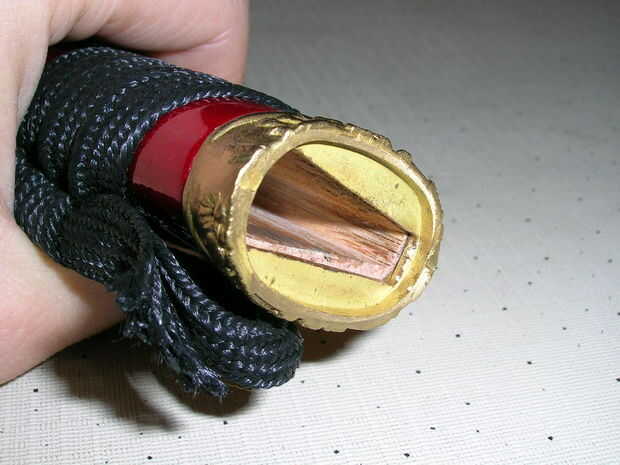 No hay en toda la longitud de la funda de la calza. El disco realmente no en contacto con el interior de la vaina. El único punto de contacto debe estar entre el habaki (el collar metálico en la base de la hoja) y la saya.