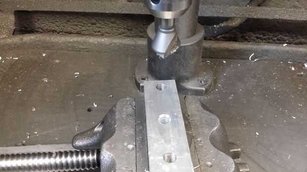 Usando la herramienta de chaflán, chaflán el agujero. Me gustaría ir un poco más grande que el diámetro principal del hilo de rosca para ser. Esto da una ventaja más en la rosca y sin rebabas. También se ve mejor...