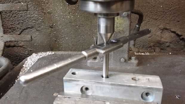Ok ahora aplicar un fluido de corte. Aplique presión para perforar Presione y gire el mango de grifo. Si usted no tiene un mango de grifo cualquier llave funciona con este método. Para cada rotación de 360 ° de rotación grifo de corte acción inversa 1/4 vuelta para romper las virutas. Si esto no se hace grifos rotos pueden ser en tu futuro!!!!!!