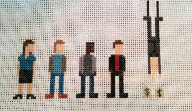 Punto de cruz patrón (en excel y forma del cuadro) con el equipo principal de Star Trek: The Next Generation.Paso 1: materialesPaño de Aida 14 Conde (patrón escrito para un marco de 5 x 7")Colores (número de color de seda estándar dado)Camisas rojas
