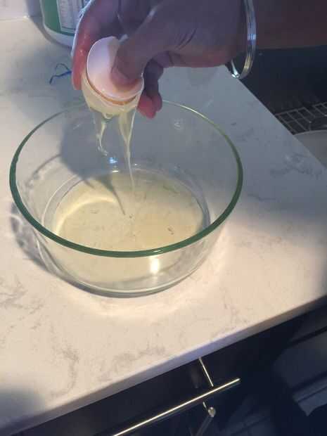 Romper 2 huevos en un bol de tamaño mediano, asegurándose de obtener sólo las claras de huevo en el tazón de fuente. Los bancos uno la mitad de la cáscara de huevo y poner dentro de la otra mitad para sostener la yema de huevo como los blancos se escurra es una manera eficaz de hacerlo.